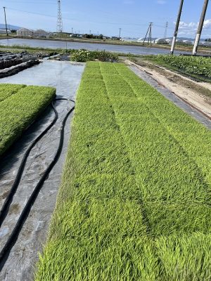 6月3日の種まきからようやく田植え用として生育しました。世の中では米騒動がおきているようですが我が家では毎年のように稲作準備しております。今現在、生育は順調です。今年もしっかり稲作おこなってます。